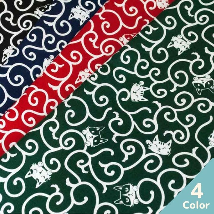 綿シーチング民芸プリント77唐草×猫柄 ...