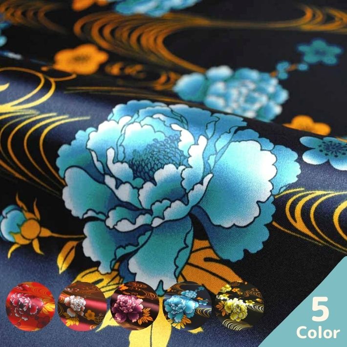 サテンプリント流水×牡丹柄...