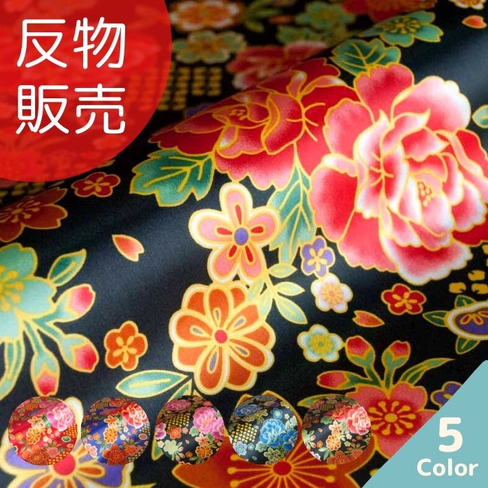 サテンプリント花菱×百花柄 反販売=5...