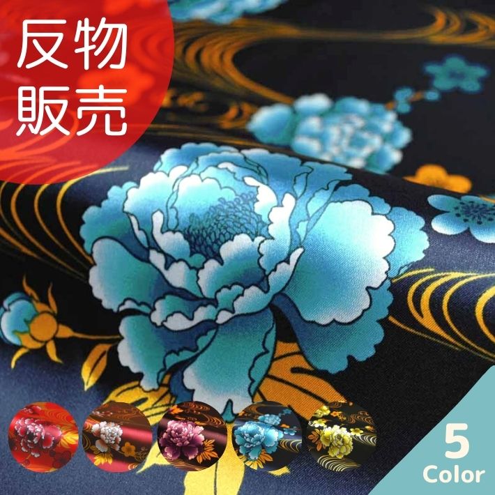 サテンプリント流水×牡丹柄 反販売=5...