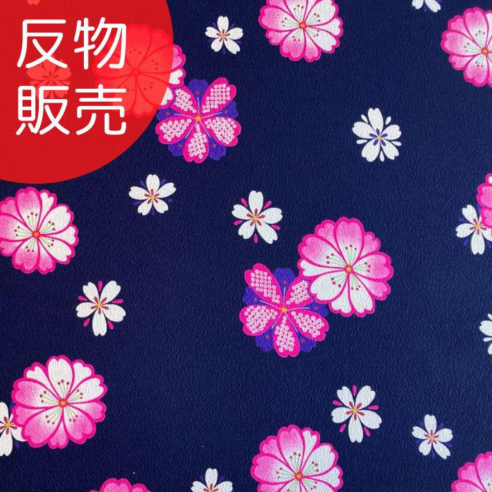 洗えるちりめんプリント桜紋ちらし 紺 反...