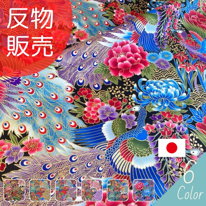 綿シーチング金彩プリント61孔雀×百花柄...
