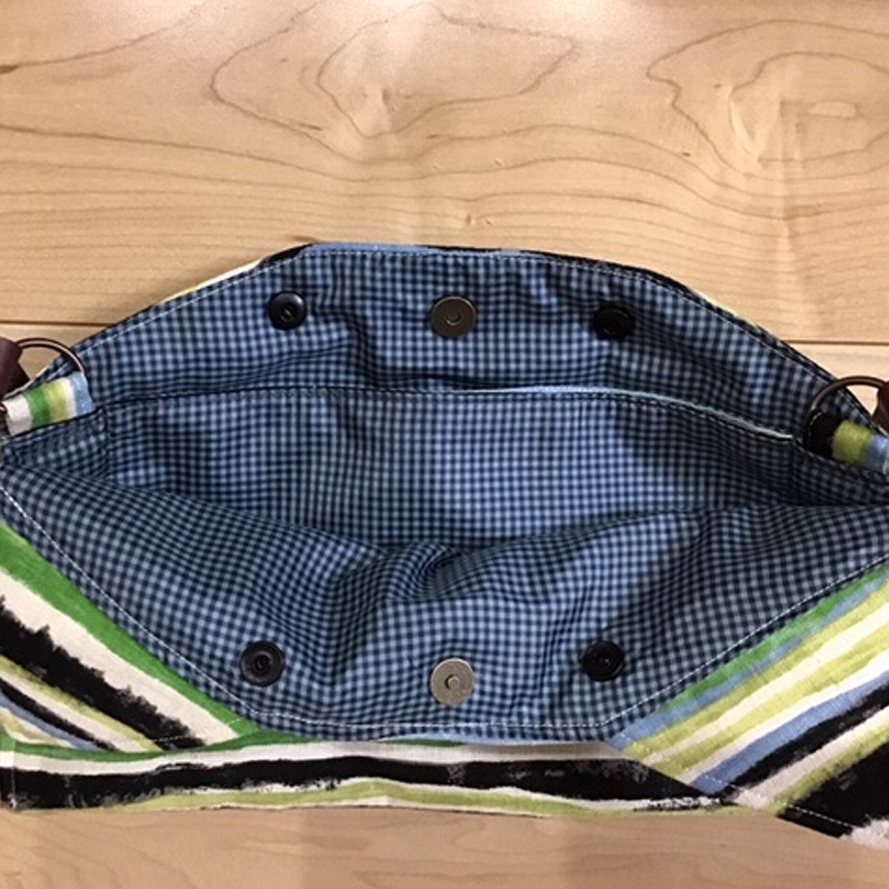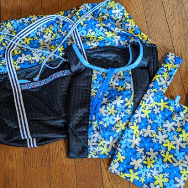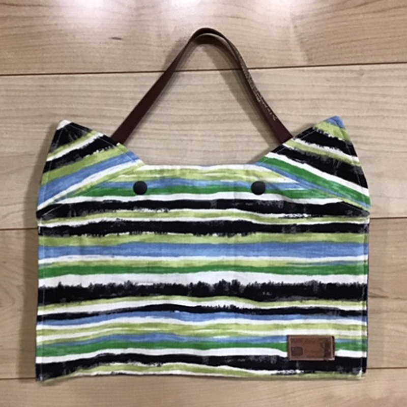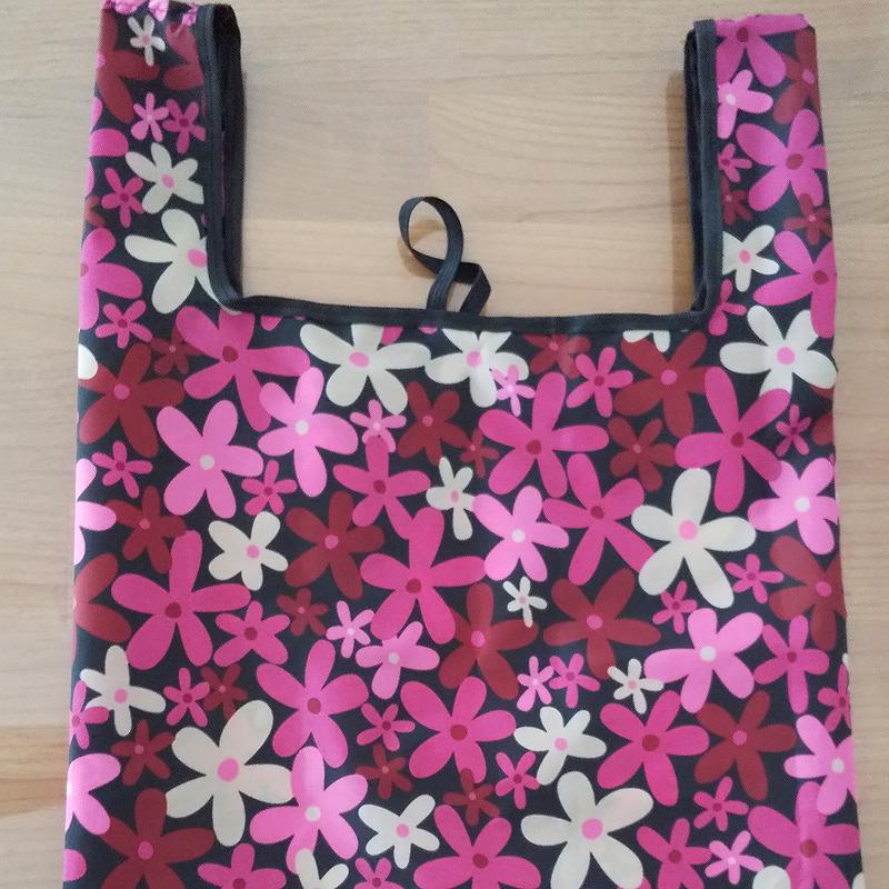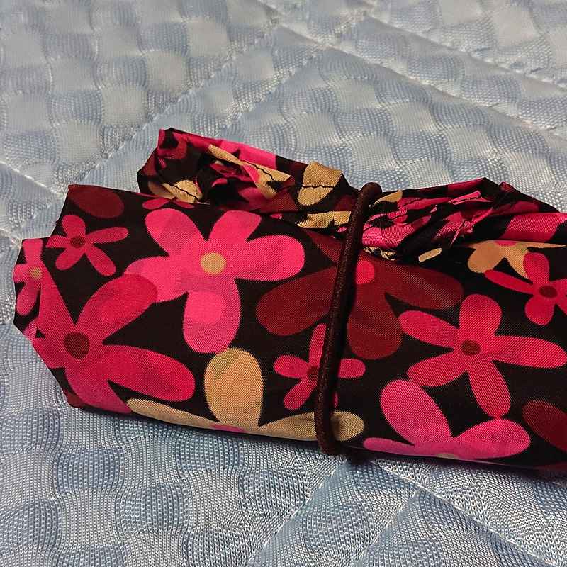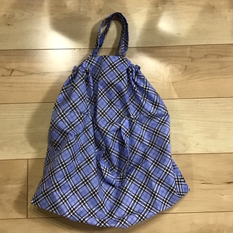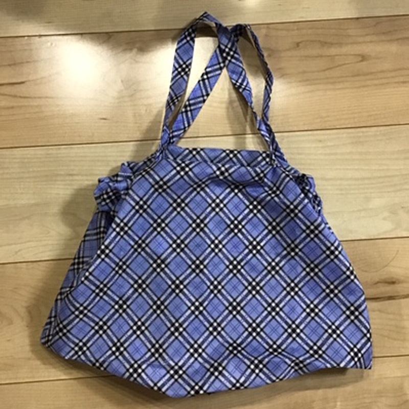 とても素敵な生地なのでどの形のエコバッグにするか悩みましたが、簡単にたためる蛇腹式にしました。ツルツル生地ですが縫いやすく、素人の私でも楽しんで作れました。 |