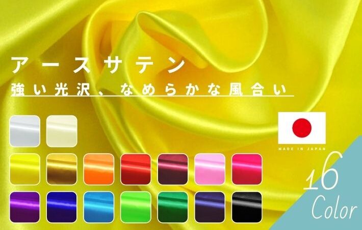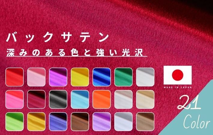 表面はなめらかでソフトな手触り、強い光沢が特徴のサテンは、ポピュラーな生地として婦人服やドレス、衣装等に広く使用されています。