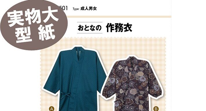 - 《実物大 説明書付き》おとなの作務衣 型紙【メール便6個まで】