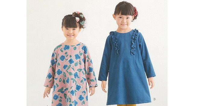 ふんわりかわいいひざ丈のワンピースが2種類作れます。