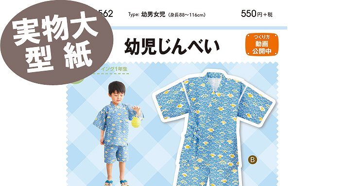 - 《実物大 説明書付き》幼児じんべい 型紙【メール便6個まで】