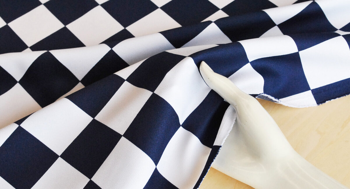 バツグンの使いやすさで人気のアムンゼンに約4.7cm角の市松柄をプリントしました。 インパクトのある大柄なので踊りの衣装や各種イベントにピッタリです。