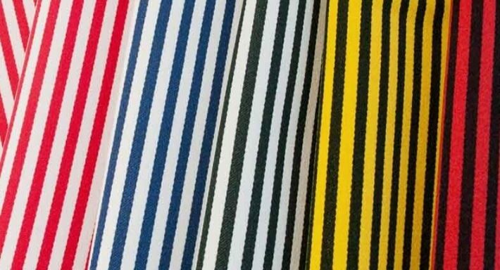 カチオン染料で染め分けることにより、プリントではどうしても生じてしまう柄の歪みを解消しています。