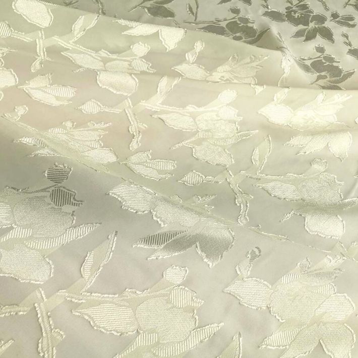サテンジャカードが角度によって強い光沢を放ち、モチーフ自体が立体的に浮かび上がるとても手の込んだ一品です。