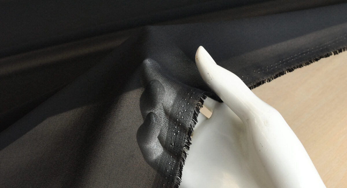 タテ・ヨコともに強撚糸を使い密度を低く織り上げ、右撚りと左撚りの糸を交互に並べることで細かいシボを作り出しています。