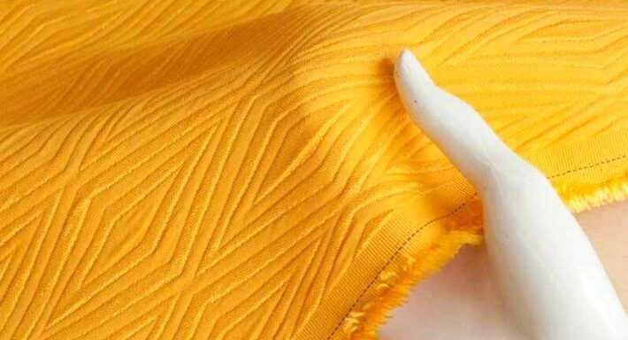 「膨れ織り(ふくれおり)」は糸の縮みと膨れを利用して柄を作り出すジャガード織りの一種で、凹凸のある布面が特徴の二重織物です。