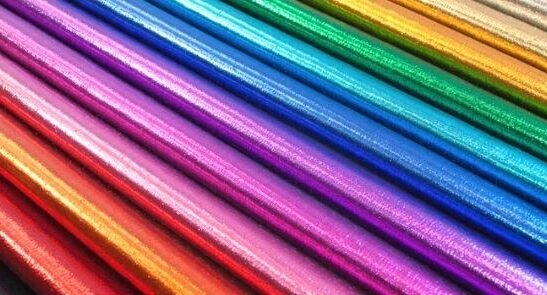 ヨコ糸にポリエステル系のラメ平糸を使っているので、一般的にはラメシャー、メタルシャー、ラメタフタと呼ばれています。