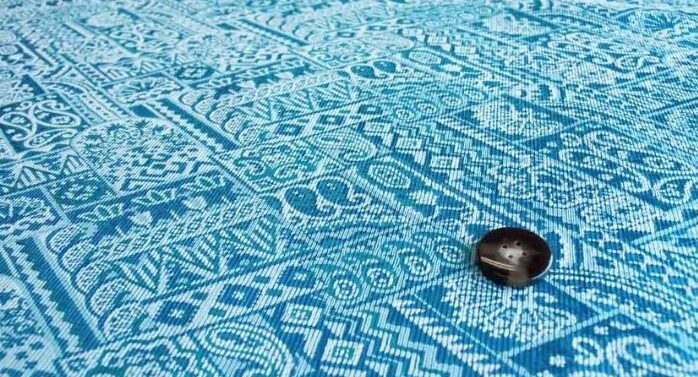 タテ糸はポリエステルで、カチオン糸との染め分けによって色の濃淡を作り出しています。