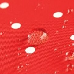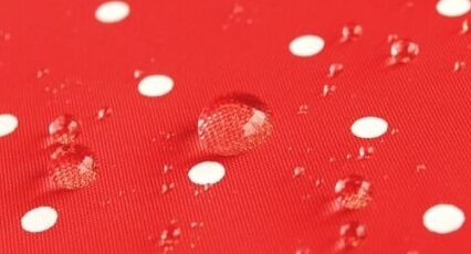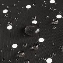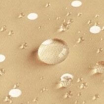織り目の隙間を塞ぐアクリルコーティングと併用することで一定の防水性はありますが、長時間の雨や水に浸けた場合は水分が内側に浸透します。また撥水加工は洗濯や摩擦により次第に効果が薄れていきます。