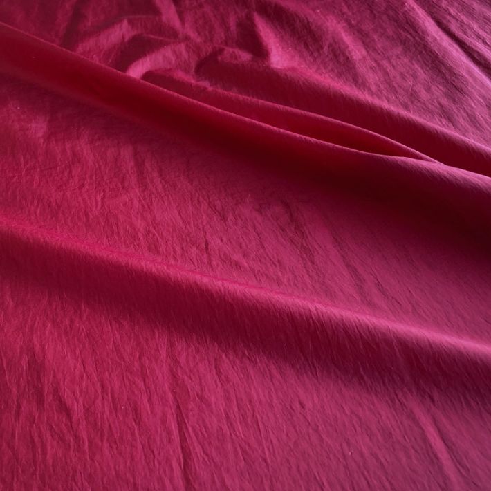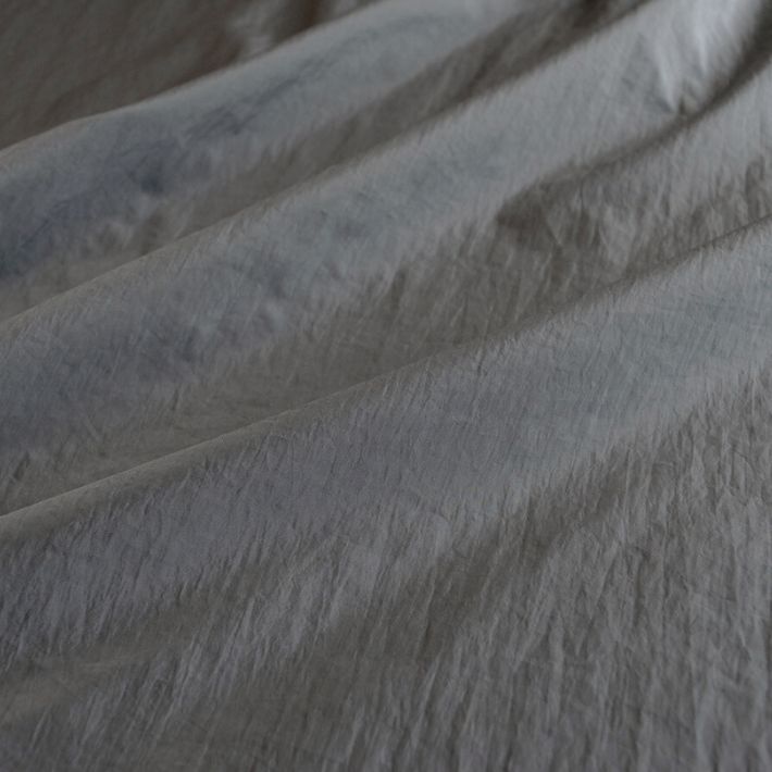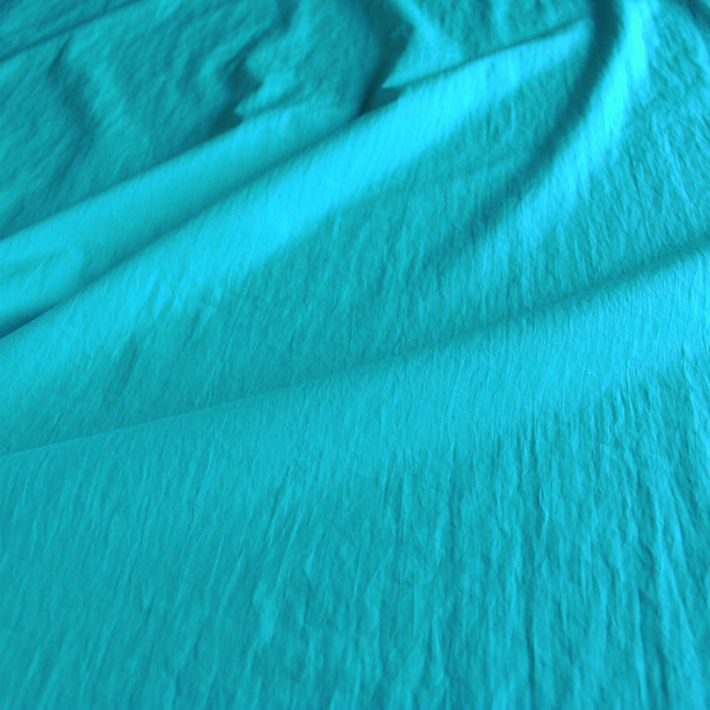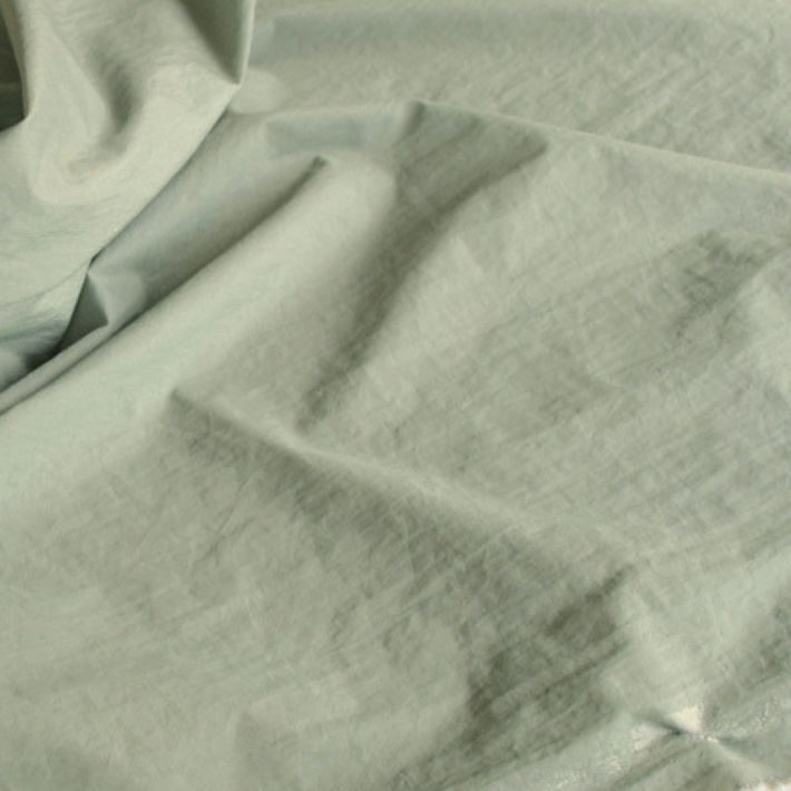 ワッシャー加工(シワ加工)、撥水加工(表面)、防水加工(裏面アクリルコーティング)という3種の加工を施したナイロンタフタです。