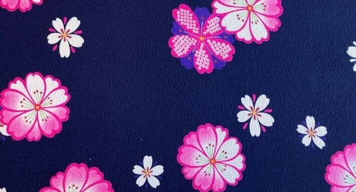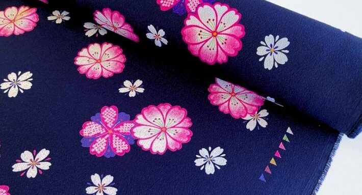 桜の花をモチーフとした柄がプリントされたちりめん生地。
