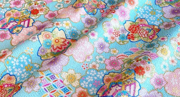 シーチングほどの厚みの平織り生地にエンボス加工で凹凸を施しました、高価な綿ちりめんの代わりとして用いられています。
