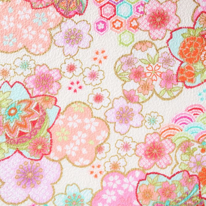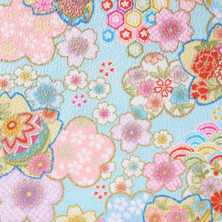 - ※桜・梅・菊・橘・藤・紅葉・御所車・毬・鼓・蝶・七宝・青海波・亀甲のモチーフ。輪郭と柄の一部に金彩
