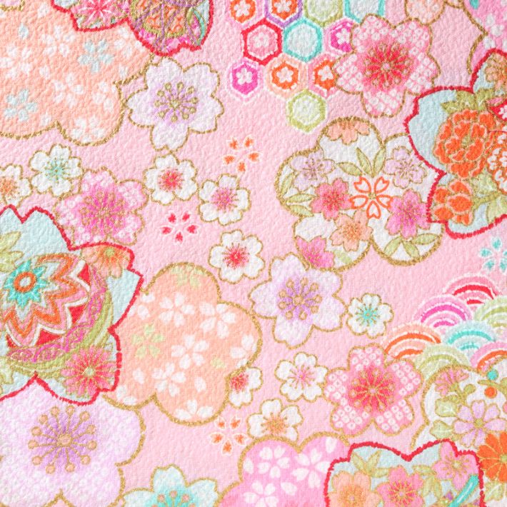 桜と梅をメインに菊・橘・藤・紅葉などさまざまな植物モチーフを組み合わせた和柄プリント。