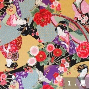 - 綿シーチング金彩プリント10扇文×美人画 反販売=36m