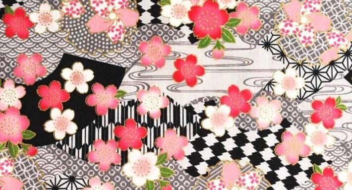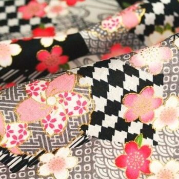 【5.黒】桜は桃色系、地柄は黒・薄墨色・象牙色