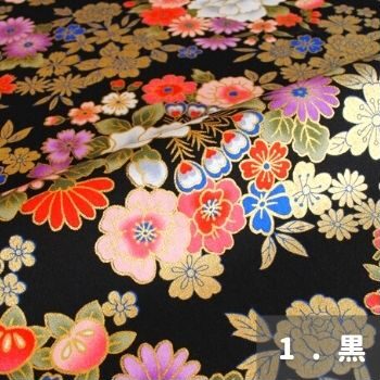 【1.黒】地色は黒、柄は白・ピンク・朱色・紫・紺藍・抹茶色