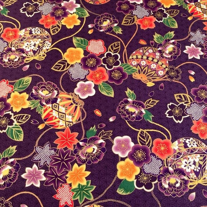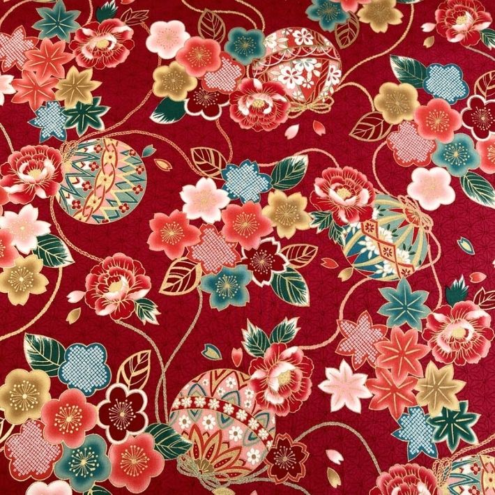 - 綿スケア金彩プリント90手毬×百花柄 反販売=36m 全4色 【送料無料】