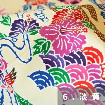 【6.淡黄(たんおう)】地色はクリーム。柄色は赤・青・緑・紫・ピンク・茶色・からし色