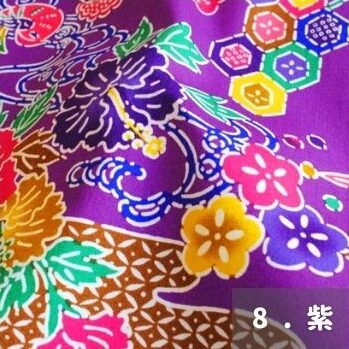 【8.紫】地色は紫。柄色は青・緑・紺・ピンク・赤紫・茶色・からし色