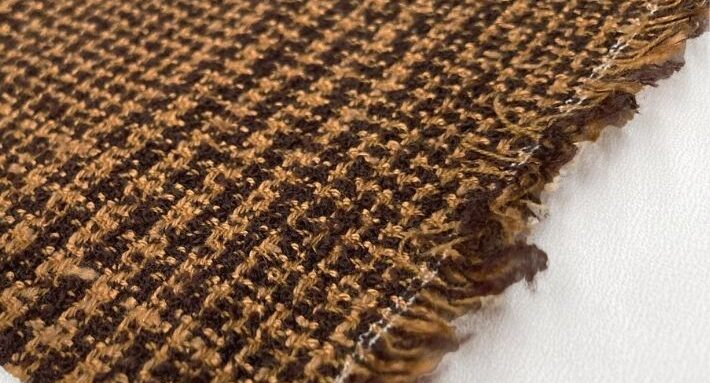 クラシカルな雰囲気のグレンチェック柄、あたかかみのある黄土色とこげ茶の配色です。秋冬のジャケット・セットアップ・パンツ・スカートに最適。他にも帽子やバッグ、クッションカバーなどの小物に取り入れると季節感を演出できます。