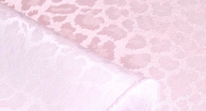 サラッとした手触りのヒョウ柄ジャガード生地、ストレッチ性はありません。