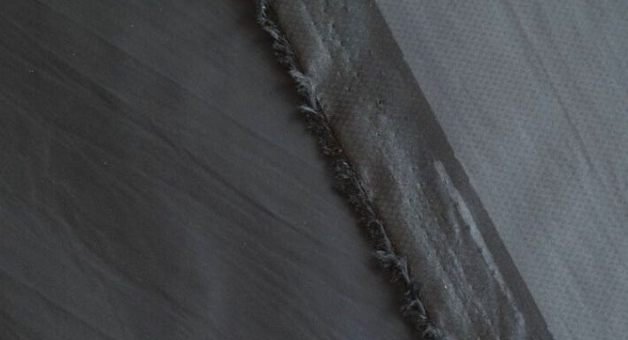 裏地くらいの薄さのナイロンタフタに裏面にはメッシュ柄のコーティング加工を施しています。