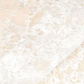 編みと柄の形成を一度に行うので、刺繍レースに比べて平坦で柄の凹凸が少ないのが特徴です。モチーフ部分にもそれほどふくらみはなく、フラットな仕上がりになります。
