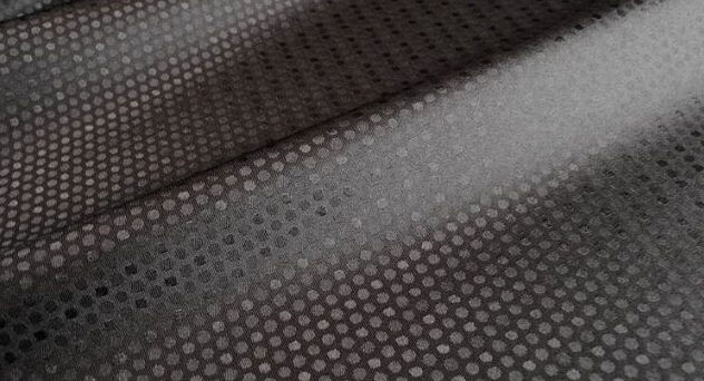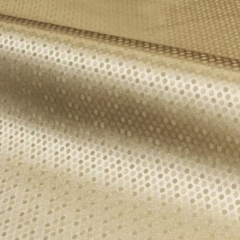 サラッとした手触りの薄手のジャガード生地、タフタよりほんの少し厚くコシのある生地感です。約2.5mm大の細かいドット柄は、光沢に濃淡が出るよう複数の織り方を採用。