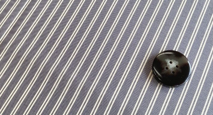 使用されている生地はローンやタフタほどの平織り生地、薄手でストレッチ性はありません。約0.8mmのライン2本を1組として規則的に配置した「ダブルストライプ(=フレンチストライプ)」です。