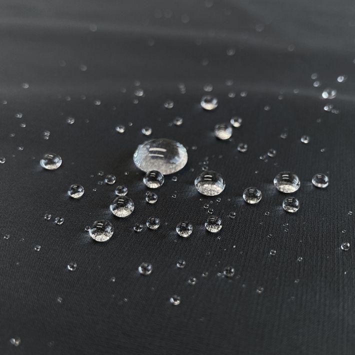 多孔質の防水透湿フィルムを使用した3層生地。(スリーレイヤー)「表地+メンブレン(フィルム)+裏地」を挟んで圧着させることで、高い防水性と透湿性を両立。