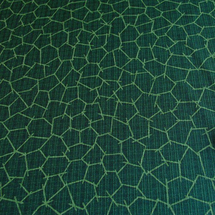 幾何学的な六角形ではなく、不規則な亀甲柄のブッチャー生地です。
