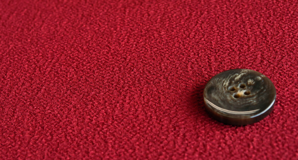 縮緬(ちりめん)はタテ糸に強撚糸、ヨコ糸に右撚りと左撚りの糸を使い交互に織った生地で、布面の凸凹「しぼ」が最大の特徴です。