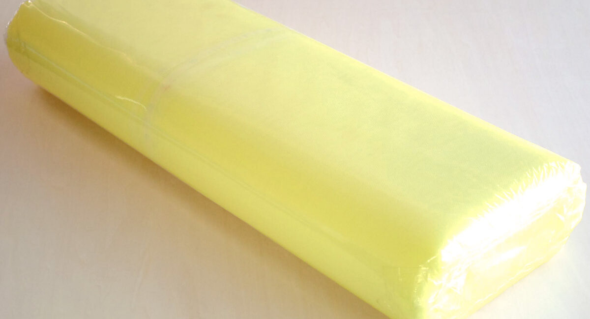 ハードチュールの中では比較的柔らかい30デニールの糸を使用しています。ほどよいハリ感があるので、ソフトチュールでは物足りない場合にオススメです。ドレスの下に合わせるパニエやバレエのチュチュ、ヘッドレストなどの小物に幅広くお使いいただけます。メッシュの大きさは約1mm、重ねて使うと色が濃くなります。(ボタンの大きさは約2cm)