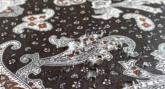 織り目の隙間を塞ぐアクリルコーティングと併用することで一定の防水性はありますが、長時間の雨や水に浸けた場合は水分が内側に浸透します。また撥水加工は洗濯や摩擦により次第に効果が薄れていきます。