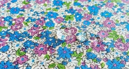 織り目の隙間を塞ぐアクリルコーティングと併用することで一定の防水性はありますが、長時間の雨や水に浸けた場合は水分が内側に浸透します。また撥水加工は洗濯や摩擦により次第に効果が薄れていきます。