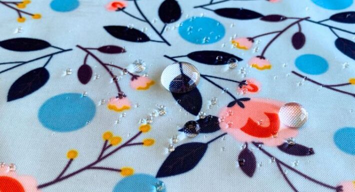 織り目の隙間を塞ぐアクリルコーティングと併用することで一定の防水性はありますが、長時間の雨や水に浸けた場合は水分が内側に浸透します。また撥水加工は洗濯や摩擦により次第に効果が薄れていきます。