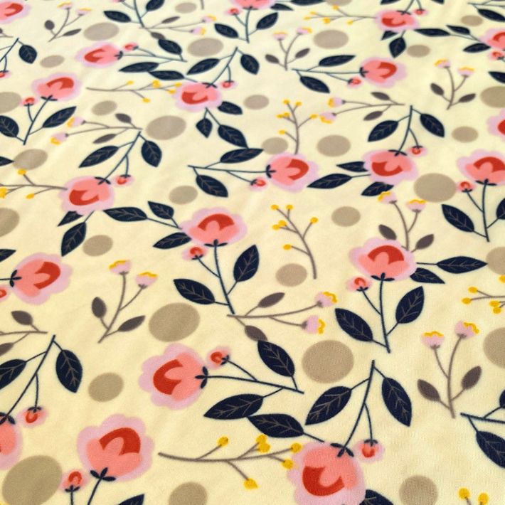 花柄とドットを組み合わせた北欧調のモダンデザイン。