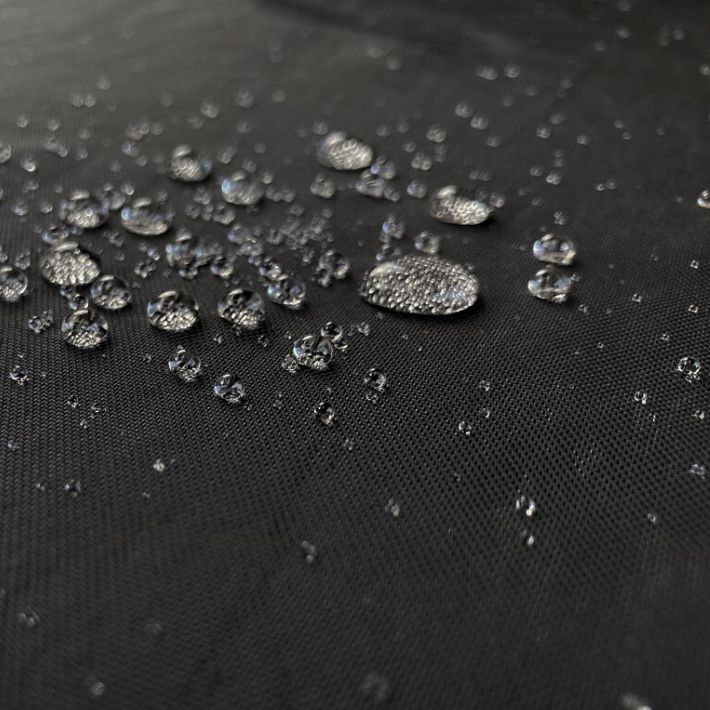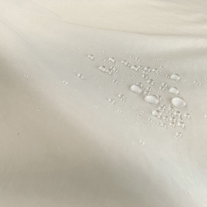 水を弾く撥水加工と、水を浸透しにくくするアクリルコーティング(裏面)を施しております。