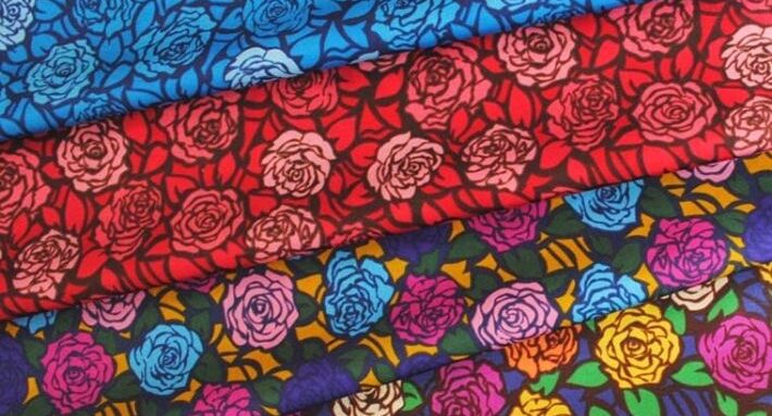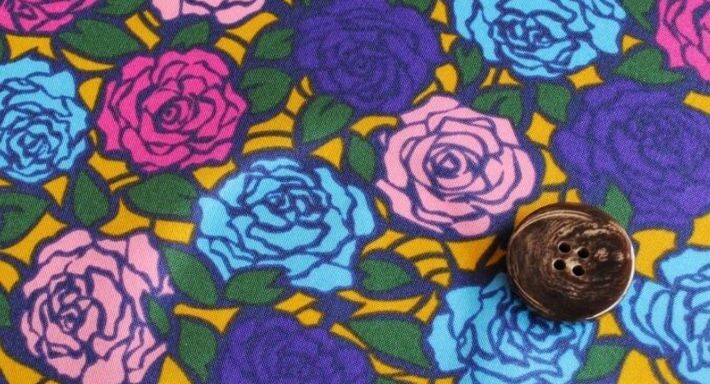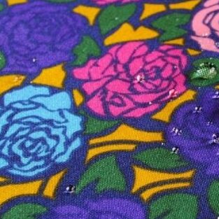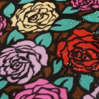 輪郭のはっきりした小さめのバラをモチーフに、葉っぱを隙間なく敷き詰めたデザイン。シンプルで使いやすいワントーンから、カラフルなマルチカラーまで取り揃えました。多彩なカラーバリエーションは、同じ柄でも全く異なる表情になりますね。
