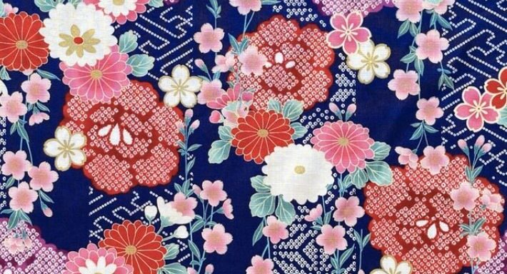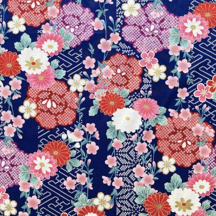 【1.紺】地色は紺色、柄は赤/紫/ピンク系